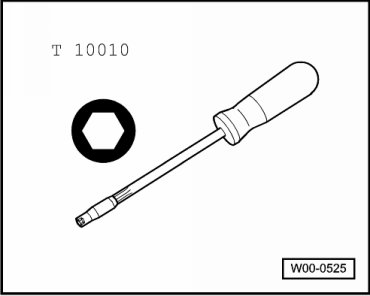 - Loosen bolts - arrow - turning toward right using socket wrench (T10010) and slide motor- 1 - out of oblong holes.
