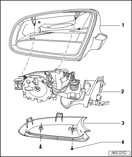 - Position mirror housing onto mirror adjusting unit - 2 - from above.