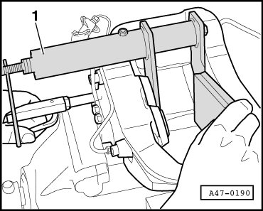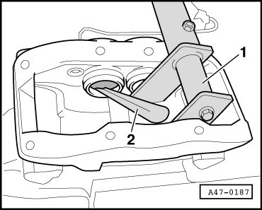 - Press in the protective cap using special tool - 1 - and - 2 -.
