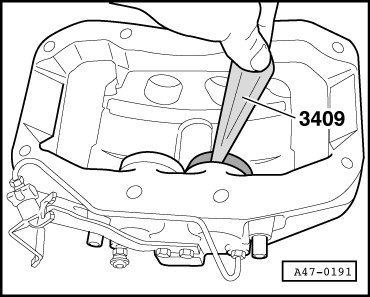- Remove protective cap from brake caliper, e.g. with trim removal wedge 3409.
