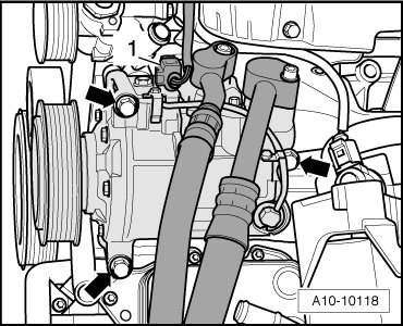 - Unbolt hydraulic pressure line - 2 - at power steering pump and set it aside on top of the longitudinal member.