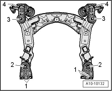 - Position support elements from (VAS 6131/10) at left and right on subframe as shown in illustration.