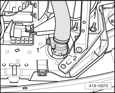- Remove coolant hoses - 1 - and - 2 - at coolant expansion tank.