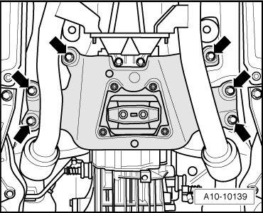 - Drive Scissor Lift Table (VAS 6131 A) under engine/transmission subassembly.