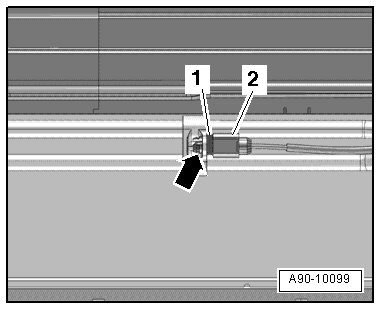 - Press the retaining clips together carefully - arrow - and remove the outside air temperature sensor (G17) from the bracket - 1 -.