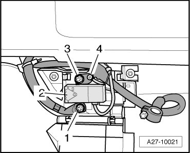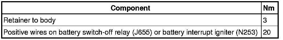- Remove battery switch-off relay (J655) - 2 - from retainer.
