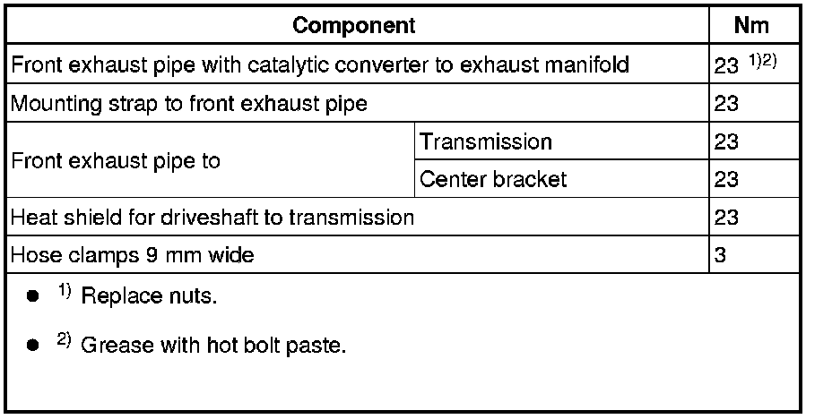 - Remove bolts - 2 - at rear bracket for front exhaust pipe.