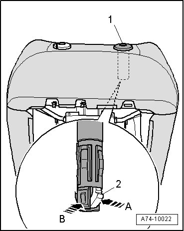 - Press catch - 2 - in - direction of arrow A - and press retaining claws in - direction of arrow B -.