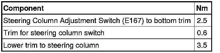 - Remove steering column adjustment switch (E167) - 1 - upward from bottom trim.