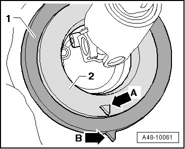 - Install the seal - 2 - into the bulkhead boot - 1 - so that the marking - arrow A - points downward vertically.