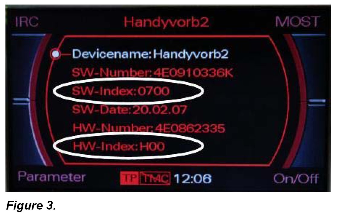 On Audi vehicles manufactured within a limited period and equipped with particular phone preparation control unit, the flash memory of the telephone control unit can become damaged.