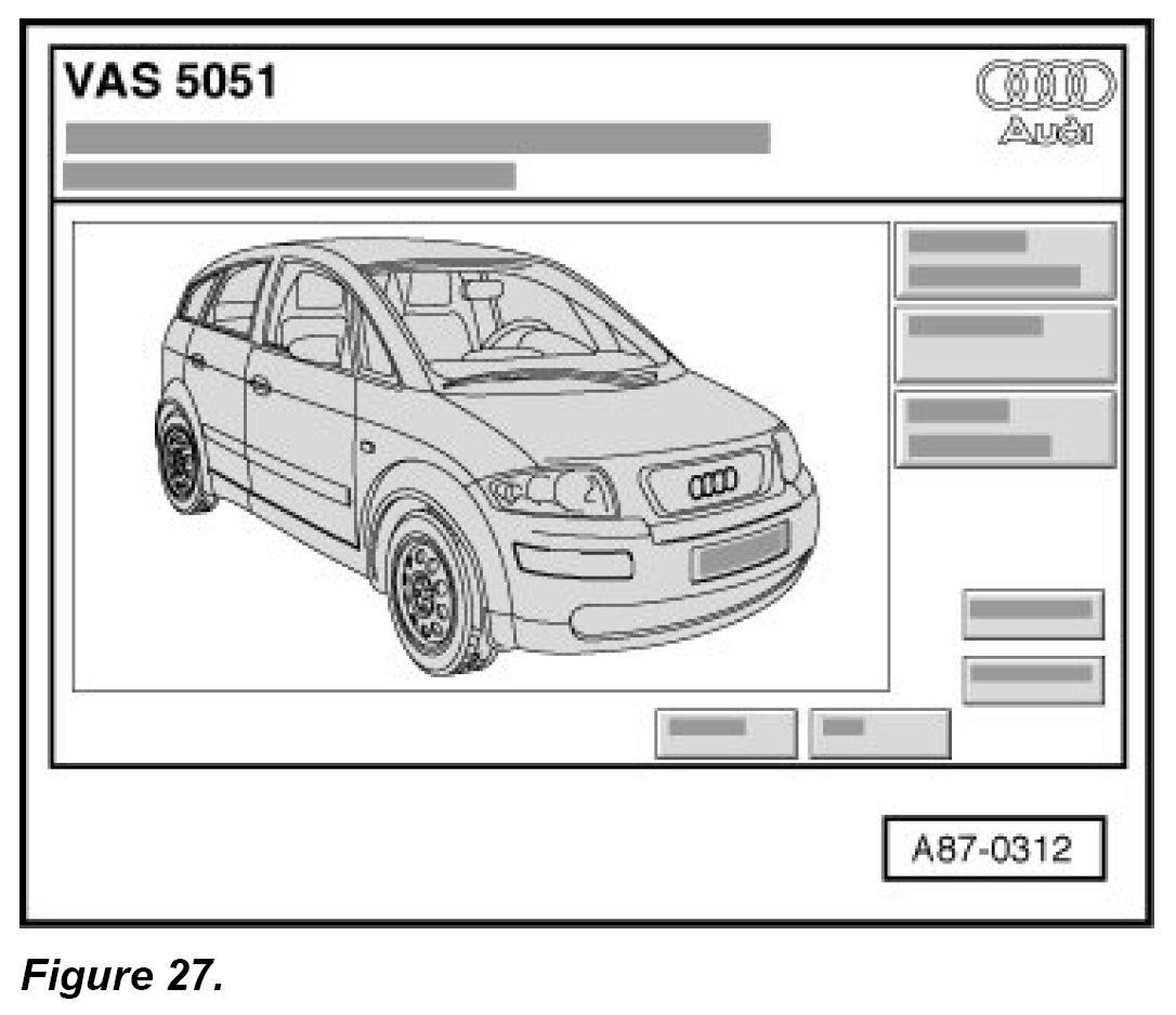 1. Connect vehicle diagnostic, testing and information system VAS 5051- or - VAS 5051B- or VAS 5052- (with online capability) to the vehicle.