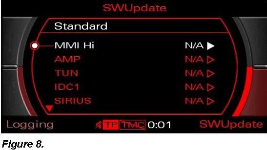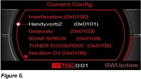 4. Perform interim software update of the remaining MMI components using Update CD 4F0 906 961 AB.