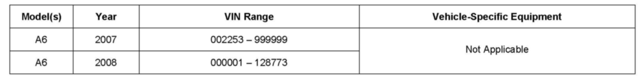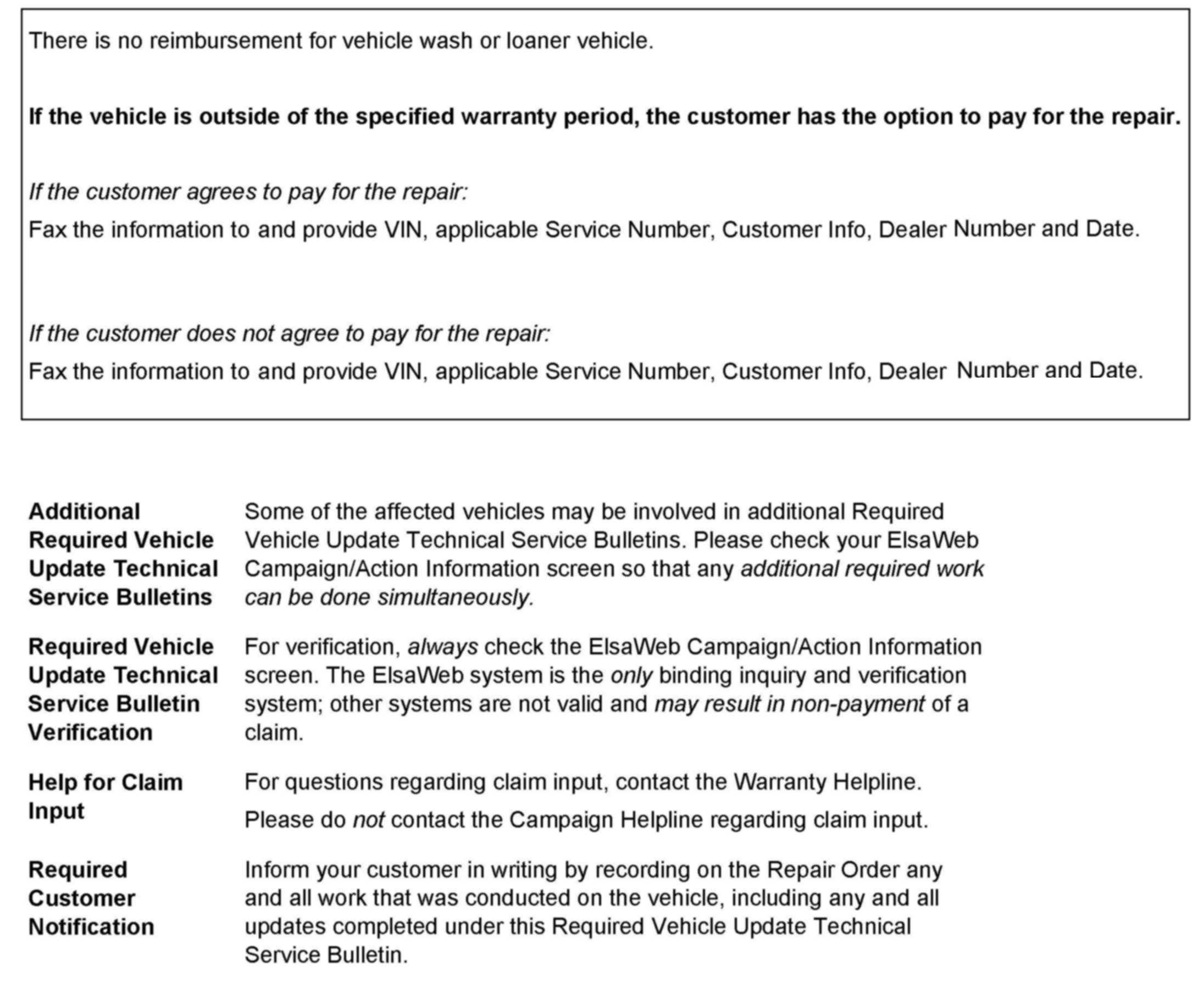 ^ Procedure must be performed on applicable vehicles in dealer inventory prior to sale.