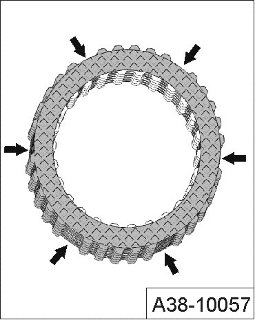 • All old, used adjustment discs, outer discs and lining discs must be replaced. They must not be reinstalled as that would not ensure the input shaft function (surface is used up).