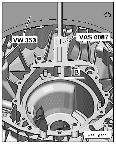 - With the (VAS 6087), measure sealing surface of the input shaft on the surface of the corrugated spring washer in the transmission housing.