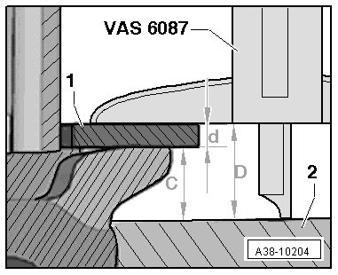 - Measure with the (VAS 6087) on the sealing surface of the input shaft and note the measurement - D -.
