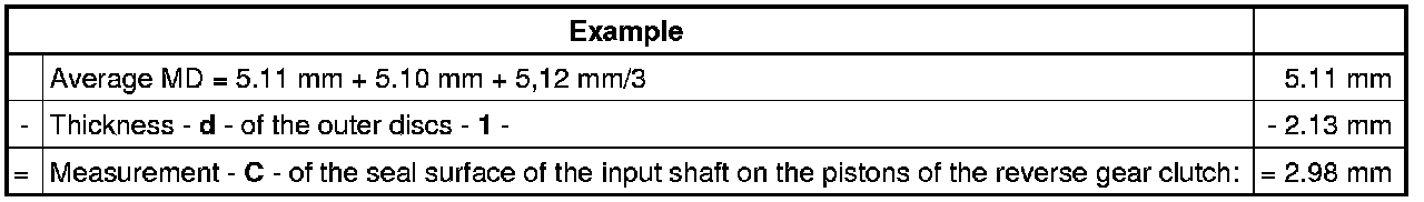 Measurement - C - of the sealing surface of the input shaft on the pistons of the reverse gear clutch:
