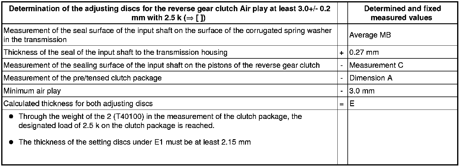 - With the calculated value E, select the thickness E1 of the adjusting disc according to table 1.