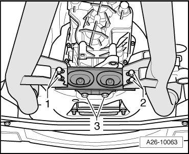 - Remove bolts - 1 -, - 3 -, - 5 - and - 6 -.