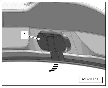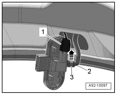 - Release the securing clip - 3 - in the direction of - arrow - and remove the washer fluid line - 1 - from the windshield washer system spray nozzle.