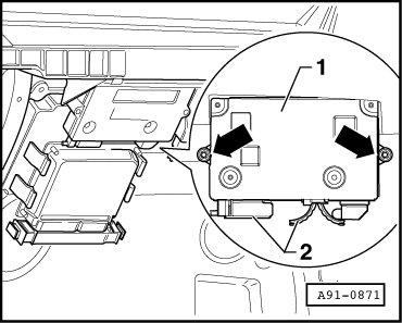 - Unscrew bolts - arrows - (4 Nm) and remove Front Information Display Control Head Control Module (J523) - 1 -.