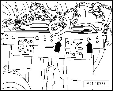 - Remove both bolts - arrows - (2 Nm) on upper side.