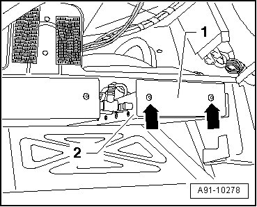 - Remove both bolts - arrows - (2 Nm) on underside of mounting frame.