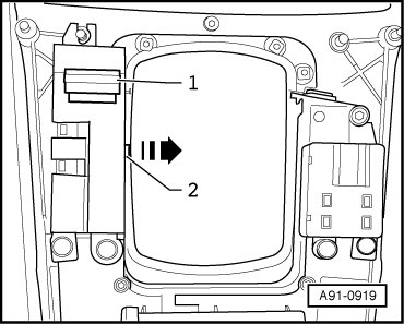 - Remove interior access/start authorization antenna 1 - 2 - from multimedia control head - 1 -.