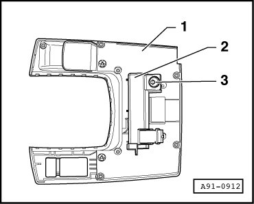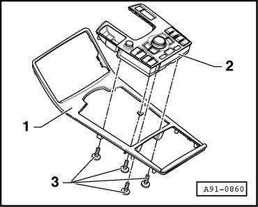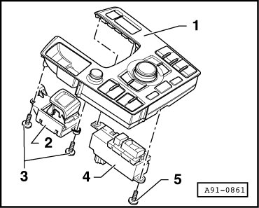 - Remove the bolts - 3 - (1 Nm) and pull parking brake contact switch - 2 - downward out of multimedia control head - 1 -.