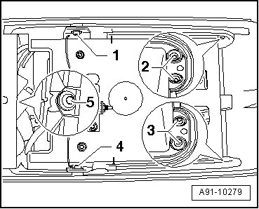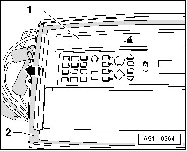 - Remove bolts - 1 - to - 5 - (3 Nm) and remove housing with fax machine from center console.