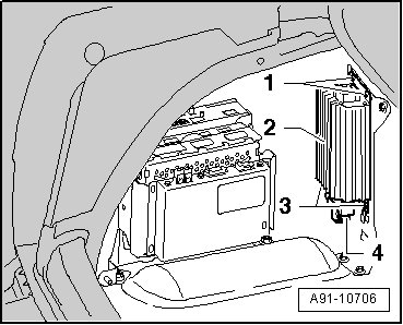 - Remove bolts - 1 - and - 4 - (3 Nm) at Digital Sound System Control Module (J525) - 2 -.