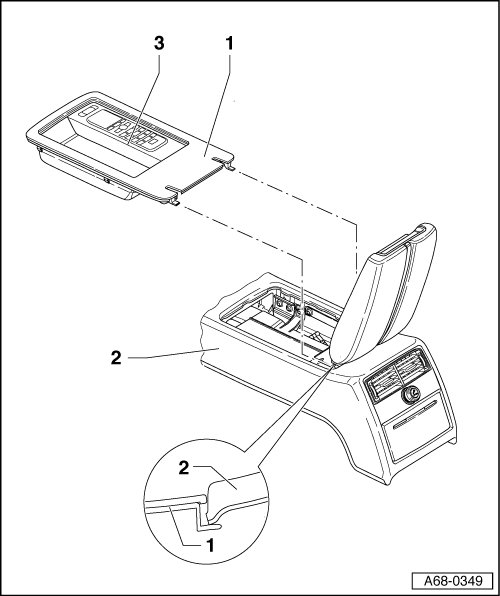 - Swivel storage compartment upward and at the same time pull storage compartment out of center console - 2 - in the direction of vehicle travel.