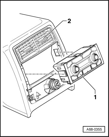 - Pull rear A/C controls - 1 - out of center console - 2 -.