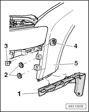 • The bolt - 7 - is installed behind the front wheel housing liner/front part.