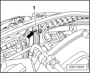 - Remove the additional threaded connector - arrow - on the support - 1 - from the engine mount.