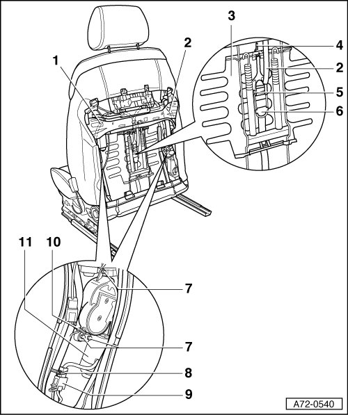 • Install motors for lumbar adjustment - 11 - in reverse order of removal.