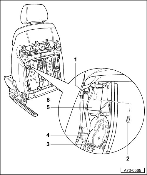 - Install upper headrest adjustment motor - 5 - in reverse order of removal.