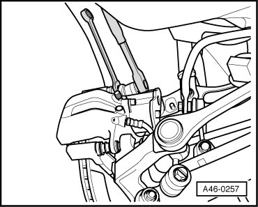 - Remove attachment bolts from brake caliper housing, to do so counter-hold guide pins.