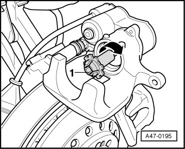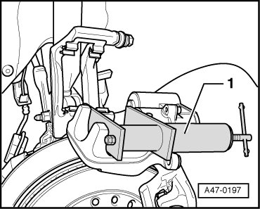 - Install pressure nut - 1 - in brake caliper as far as stop and then loosen pressure nut a quarter turn.