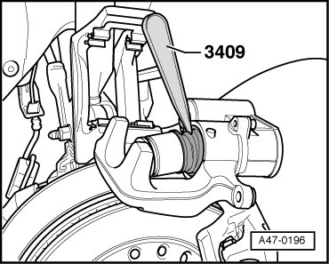 - Piston resetting tool (T10145) can also be used to press brake piston back in.