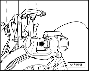 - After brake piston has been guided onto pressure nut, press it as far as stop into brake caliper.