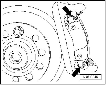 - Make sure that the brake pads are located correctly in anti-rattle springs - arrows -.