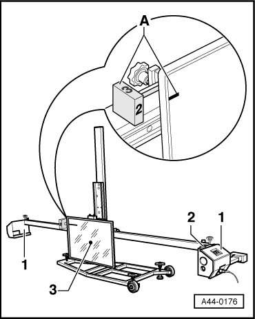 - Check the preliminary adjustment using the laser beam - 3 - on the (VAS 6190).