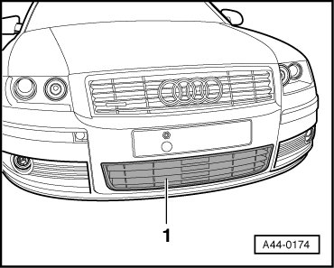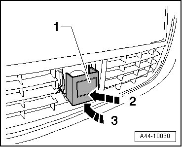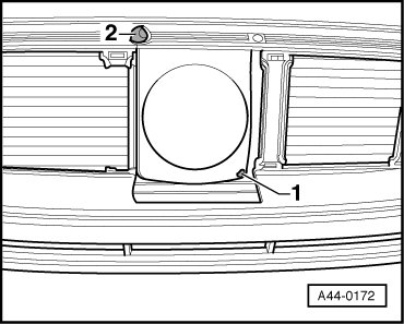 - Remove the decorative grille - 1 - from the front bumper cover.