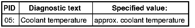 - Select measuring value "PID 05: Coolant temperature".