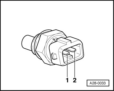 - Use adapter cables from connector test kit (VAG1594) to connect portable multimeter (VAG1526) to terminals 1 and 2 of sensor for resistance measurement.