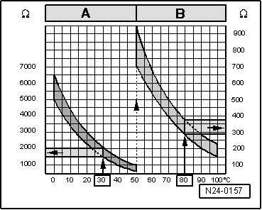 • 30 °C corresponds to a resistance of 1500 to 2000 ohms