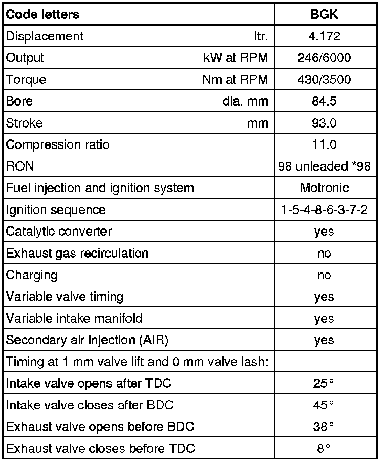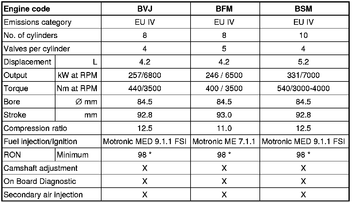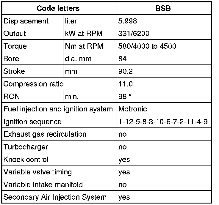 * 95 RON Super unleaded gasoline is permissible, however with decreased power output.
