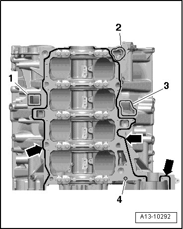 - Apply sealant beads - arrows - to clean sealing surfaces as shown in illustration.
